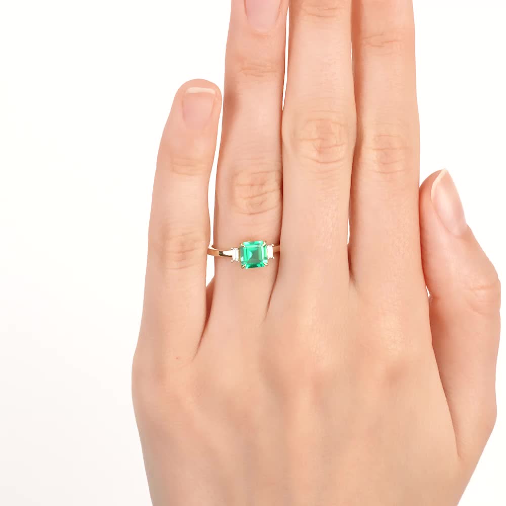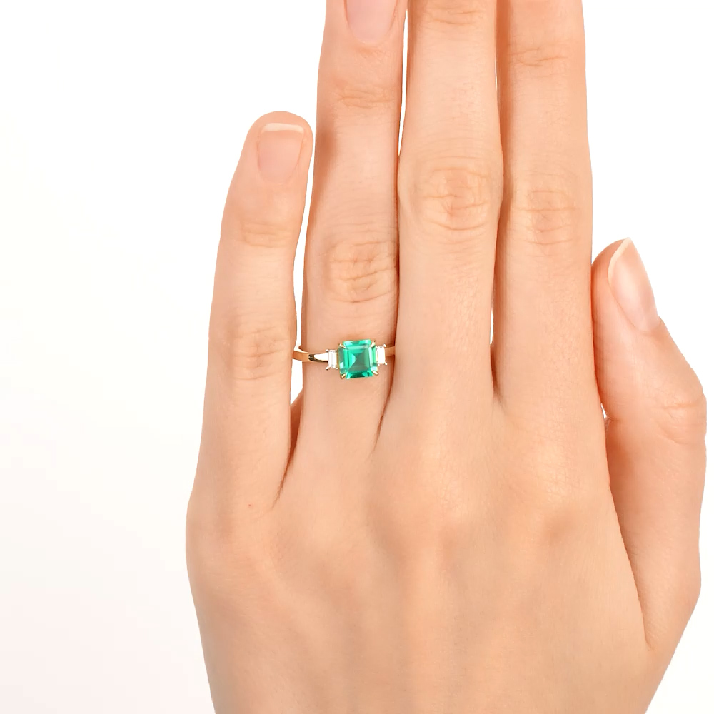 Кольцо с 1 изумрудом выращенным Колумбия, 0.91 карат;