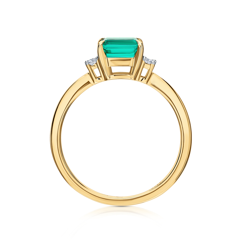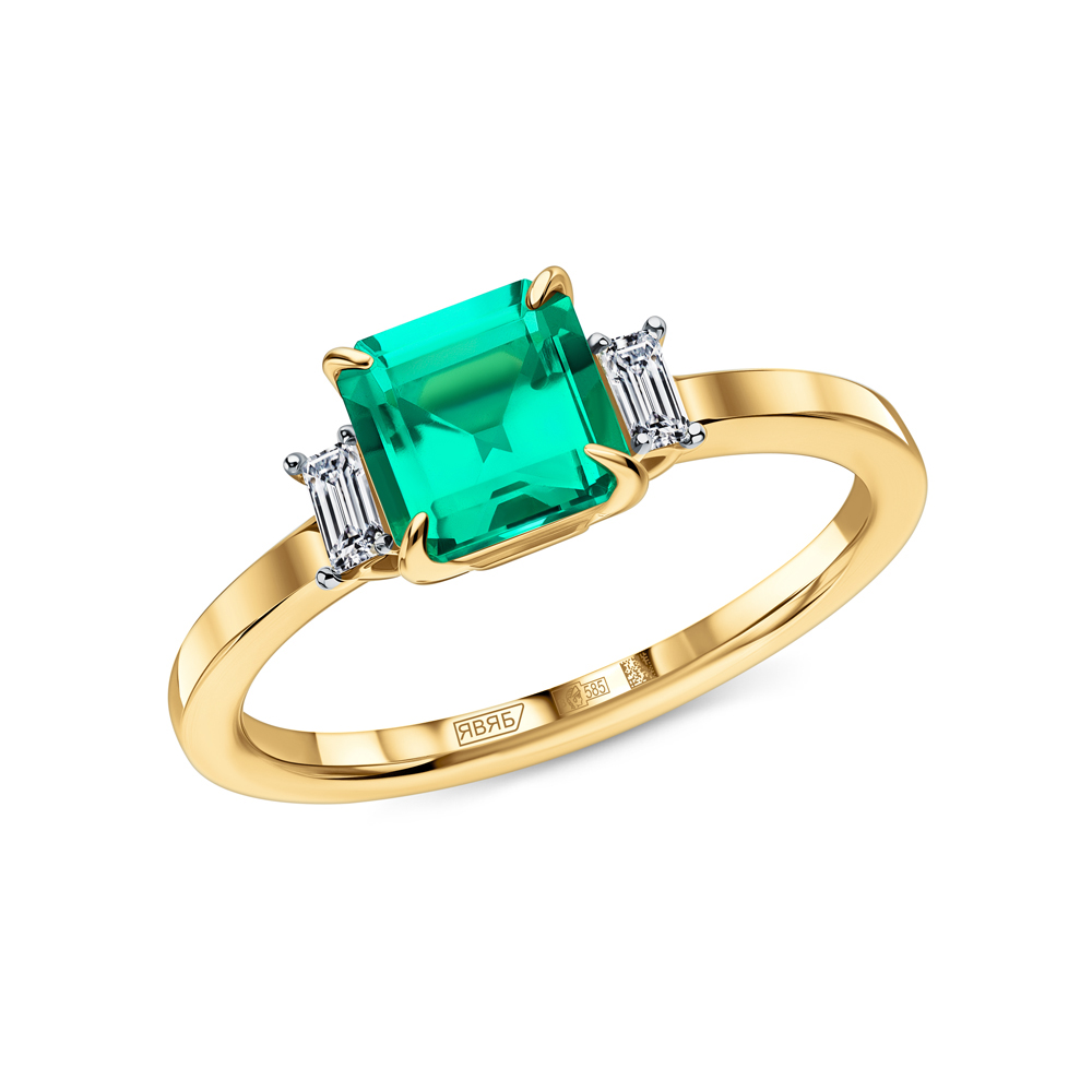 Золотое кольцо с бриллиантами выращенными и изумрудами выращенными