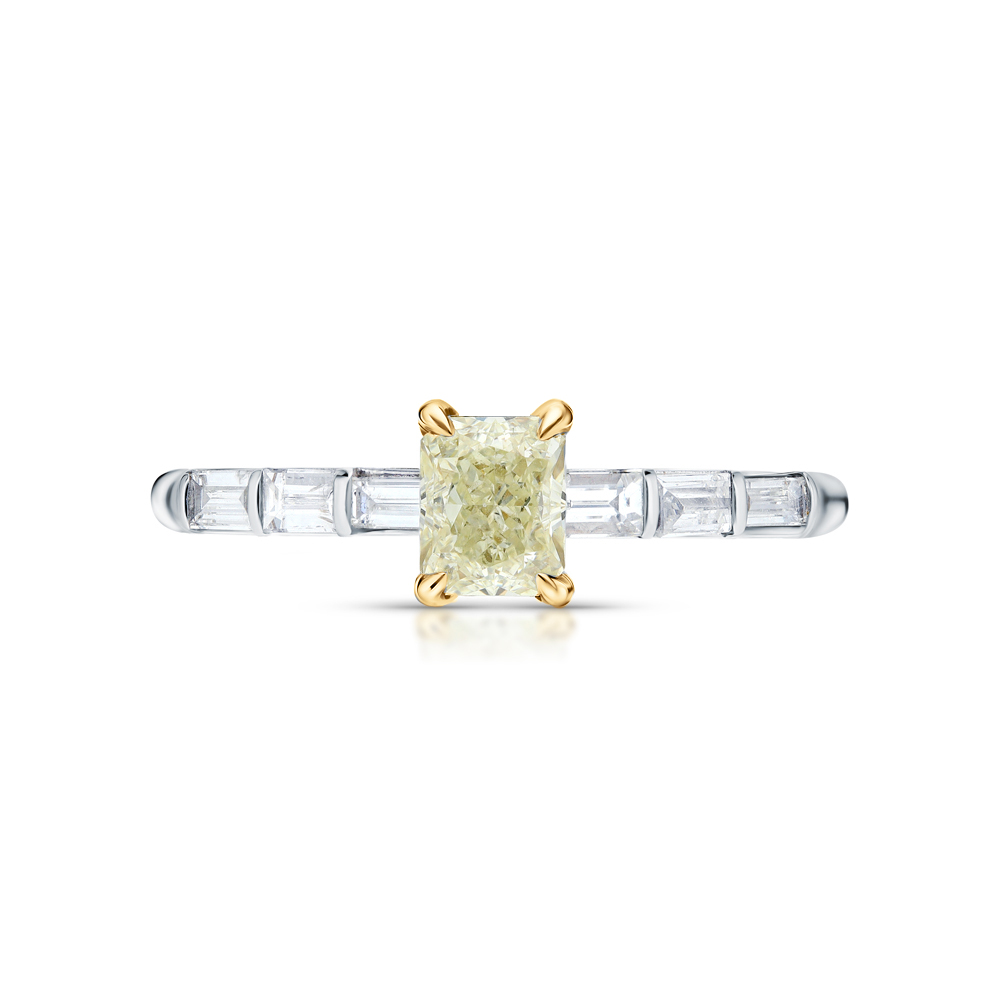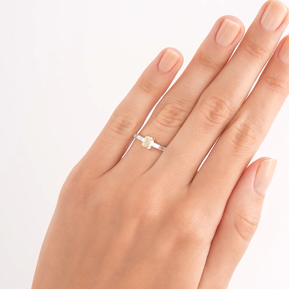 6 бриллиантами природными, 0.29 карат, огранка багет 33 грани, цвет 3, чистота 4, тип огранки А;