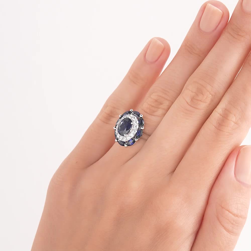 Золотое кольцо с бриллиантами природными и сапфирами природными