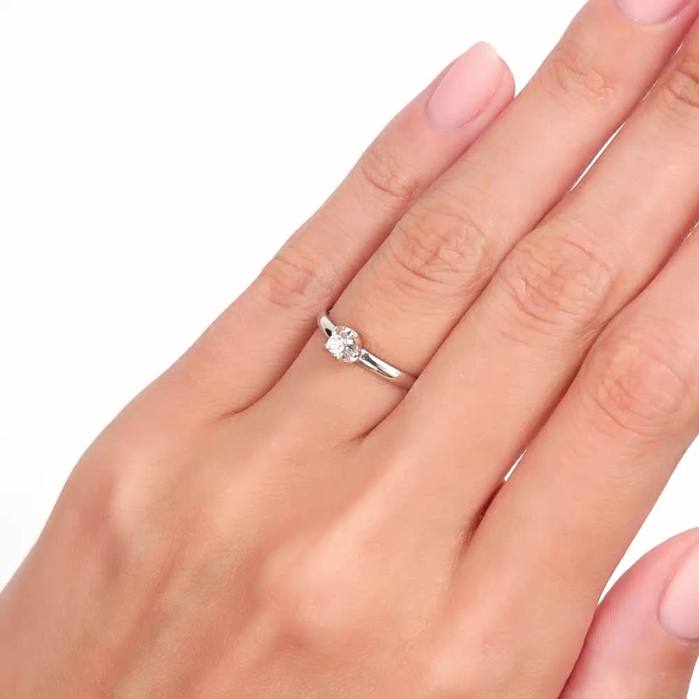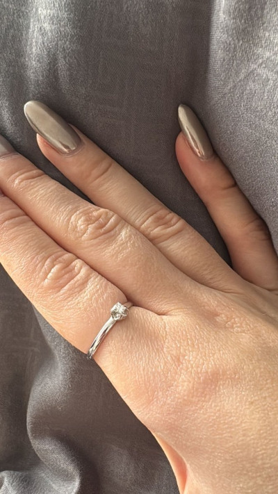 Кольцо с 1 бриллиантом природным, 0.05 карат, огранка круг 57 граней, цвет 3, чистота 6, тип огранки А;