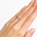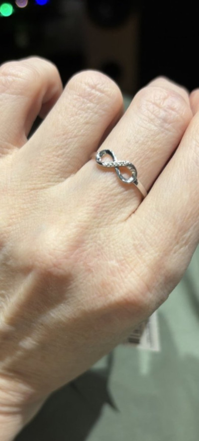 Кольцо действительно сияет, камера не передаёт этого полностью даже на профессиональных фото в карточке. Я выбирала между 16-м и 16,5 размерами — и взяла больший, просто потому, что в нём как будто бриллиантики чуть крупнее, их лучше видно. Кстати, вес моего экземпляра не 0,57, как написано в характеристиках, а больше грамма. И у брильянтовых крошек каратность тоже чуть крупнее, хотя они всё равно крошечные, конечно. Колечко нежное, планирую носить на большом пальце, думаю, подойдёт практически к любым кольцам на той же руке.