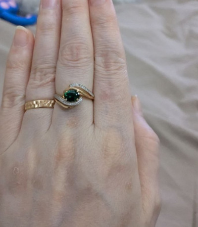 Колечко просто блеск, камень сияет и переливается зелёными гранями в обрамлении алмазов. Необычный дизайн. Дочка довольна. Спасибо Санлайт.