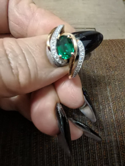 Очень красивое, женственное колечко! Изумруд привлекает всеобщее внимание. Как подарок на берилловую свадьбу отлично подошло!