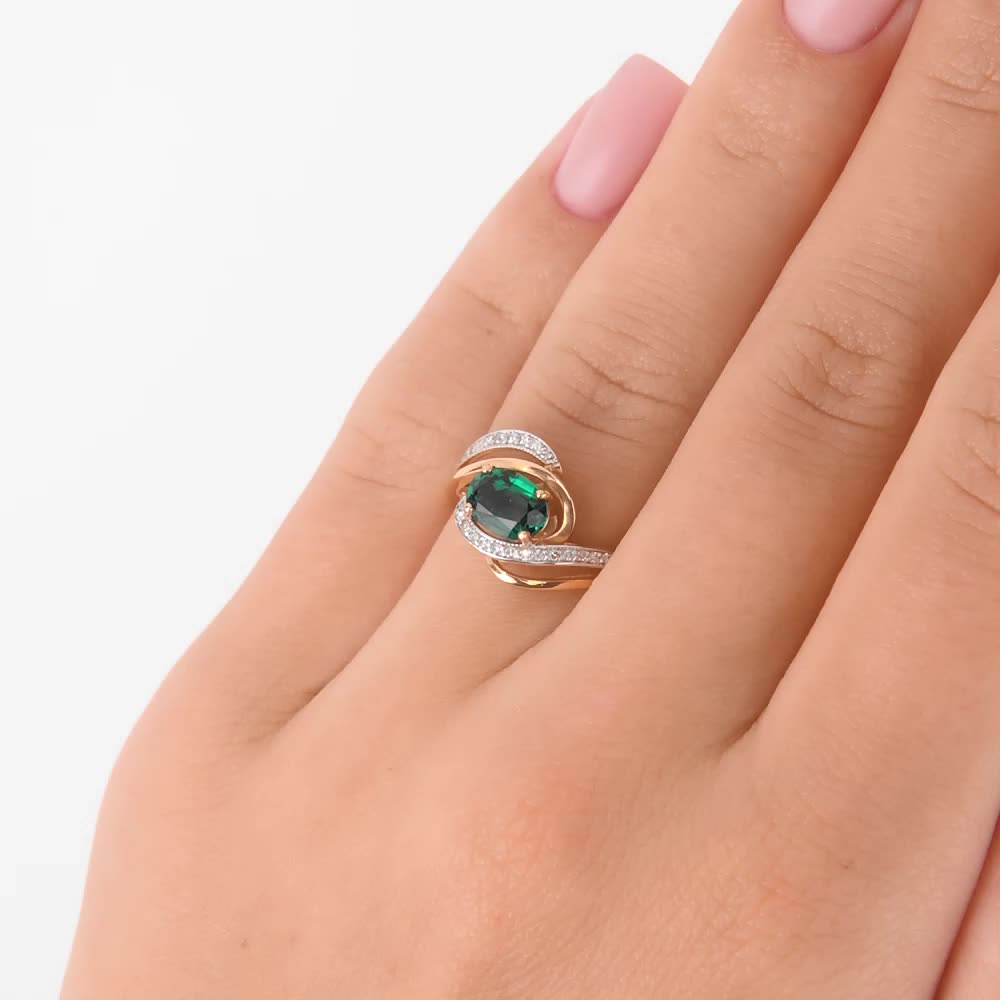 Золотое кольцо с бриллиантами природными и изумрудом выращенным