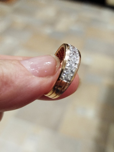 Кольцо очень красивое.Шик, блеск.На фото совсем не то передаётся.В живую очень красиво.Брала как обручальное.Широкое.На пальце сидит удобно.На внутренней стороне все ровно.