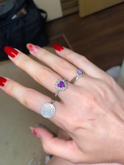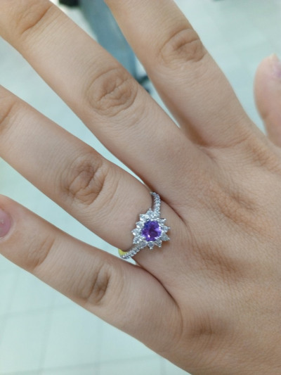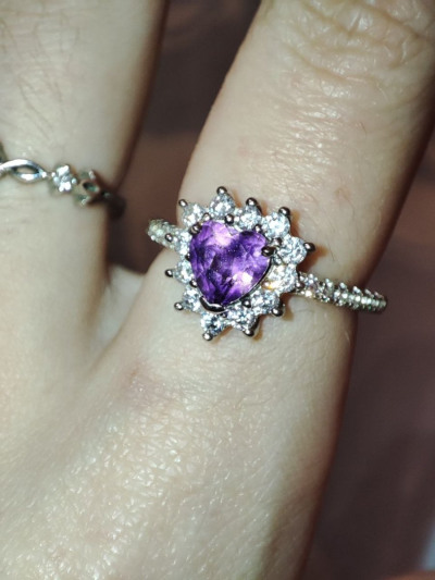 Серебряное кольцо с аметистом и фианитами!! Очень удобное, не цепляется за одежду!!!