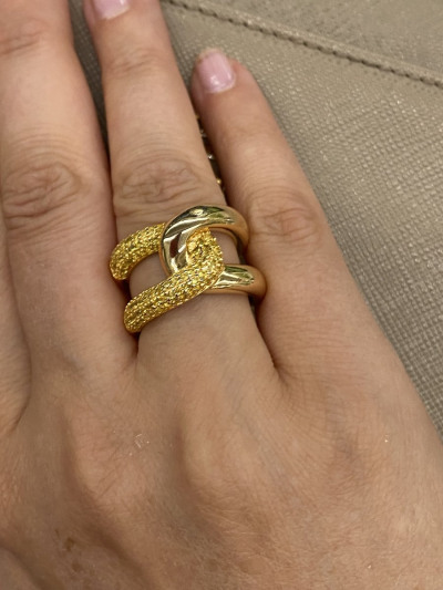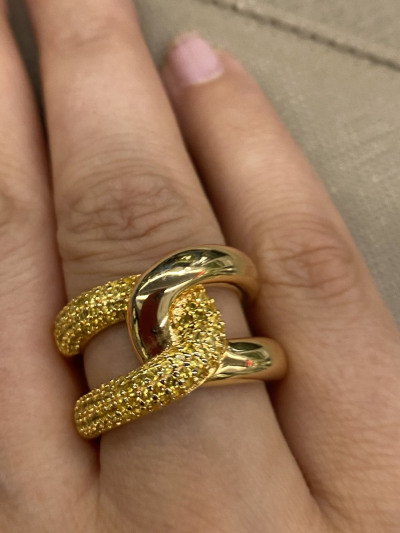 Кольцо крупное серебро желтая позолота и желтые фианиты по высоте 1,5см стильное. Обратите внимание чтоб позолота была равномерной в каких то местаз не прозолотиласт