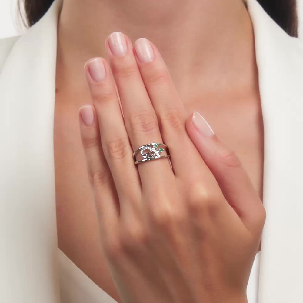 Серебряное кольцо с фианитами и агатами природными