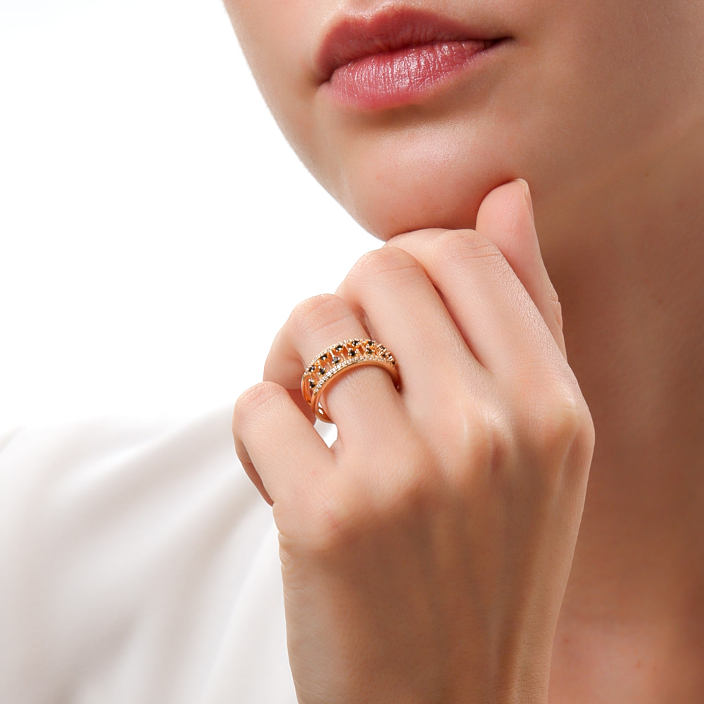 Модная жёлтая позолота, чёрная шпинель заменяет чёрные бриллианты. Оригинальное кольцо!)