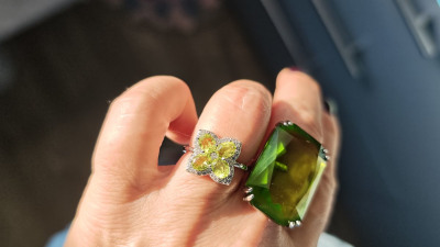 КУпила серебрянное кольцо и подвеску с фианитами и хризолитами в м-не Пассаж в Екатеринбурге. Как примерила это кольцо, все расцвело как весной, хотя на дворе начало зимы. Очень красивое кольцо, сверкает и переливается, наполняет сердце слнцем и хочется просто не снимать его. Помогала мне в выборе продавец Жанна, очень внимательная, простая в общении, доброжелательная, такая ловкая, быстрая, я ей очень благодарна за помощь и внимание.