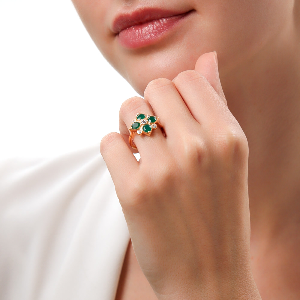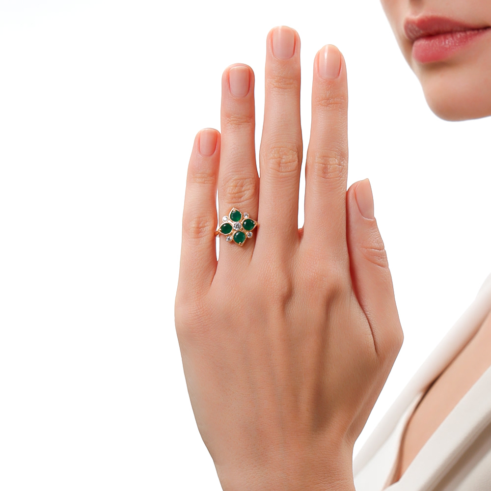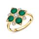 Кольцо с 4 агатами зелеными природными;