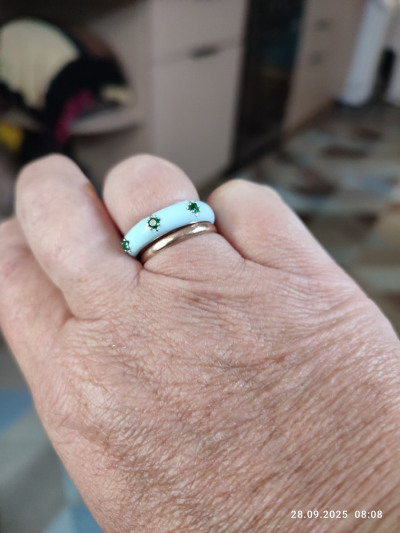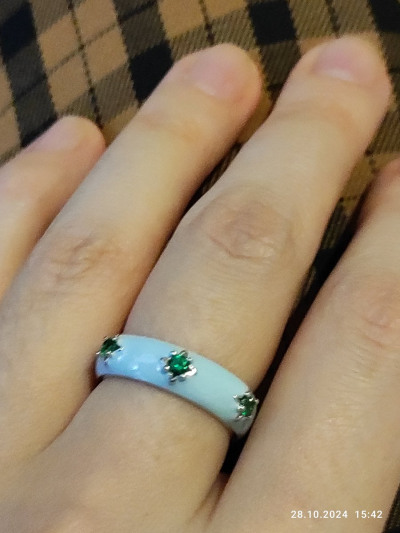 Вот при тусклом свете цвет. Светло голубой. Свежее кольцо