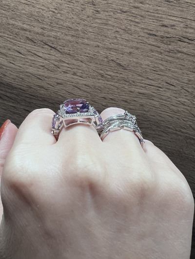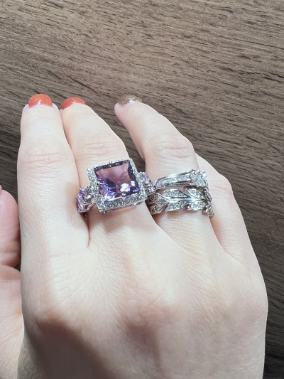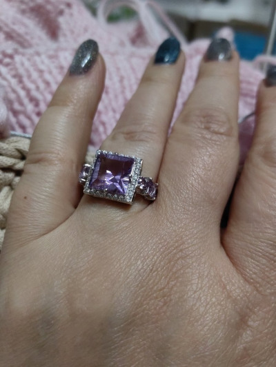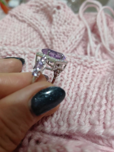 Кольцо выглядит презентабельно. Очень элегантное 😍. Мне очень нравится. Аметист большой. Фианиты подчёркивают его очарование.