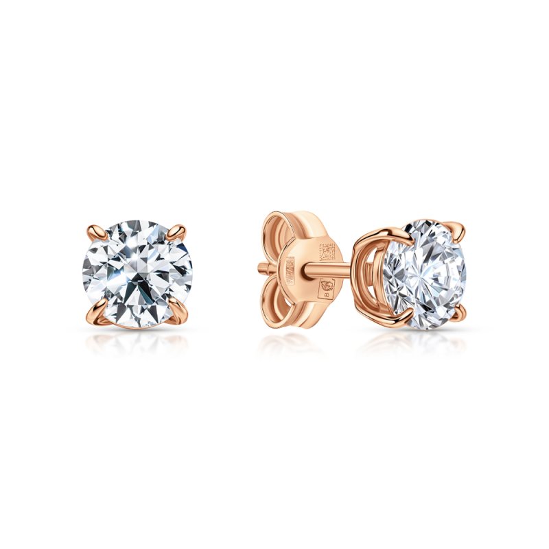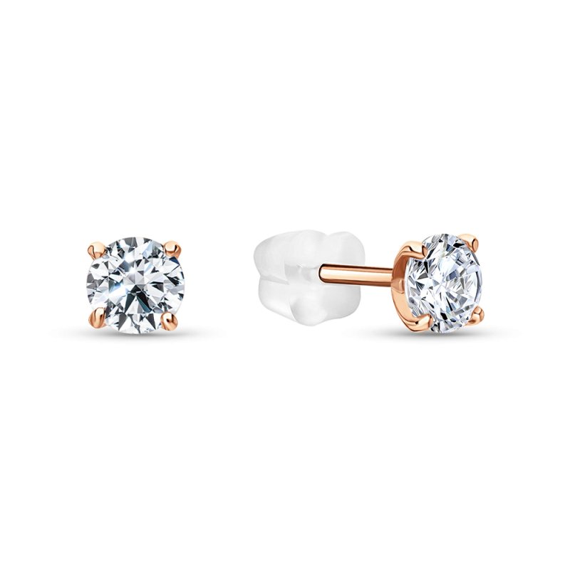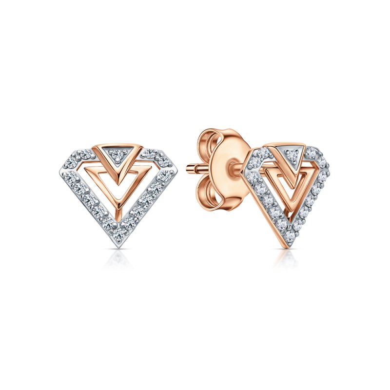 Серьги с 2 бриллиантами природными, 0.01 карат, огранка круг 17 граней, цвет 2, чистота 2, тип огранки А; 10 бриллиантами природными, 0.03 карат, огранка круг 17 граней, цвет 2, чистота 2, тип огранки А; силикон; Розовое золото 375 пробы.